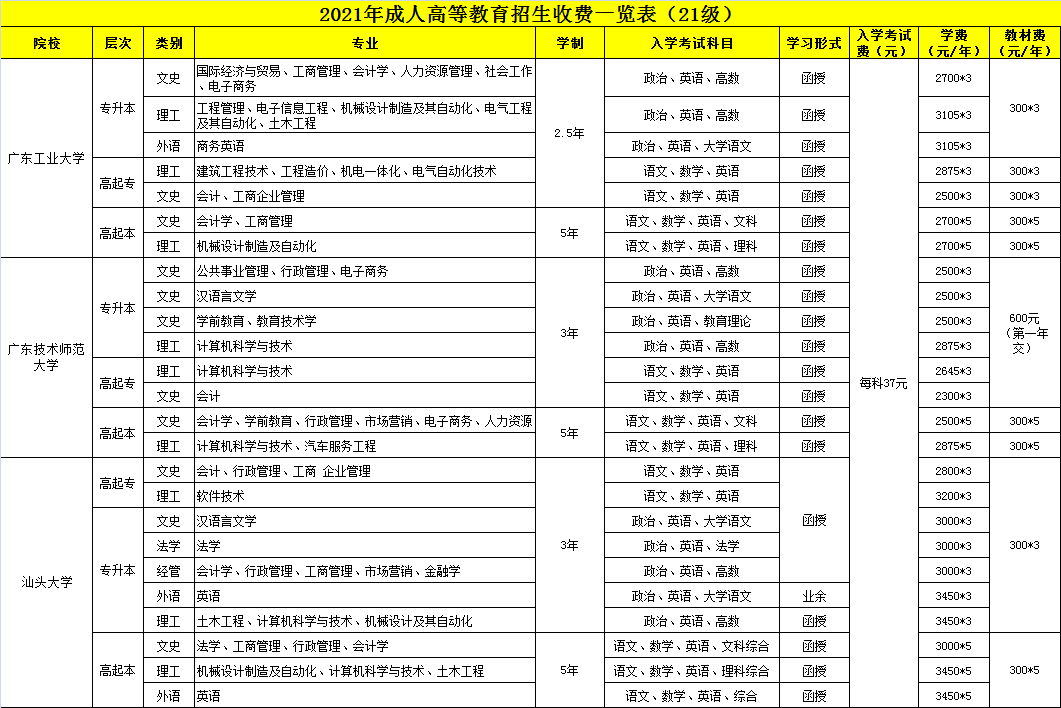 4、不用参加成人高考,需要到汕职院参加入学考,入学考很简单;